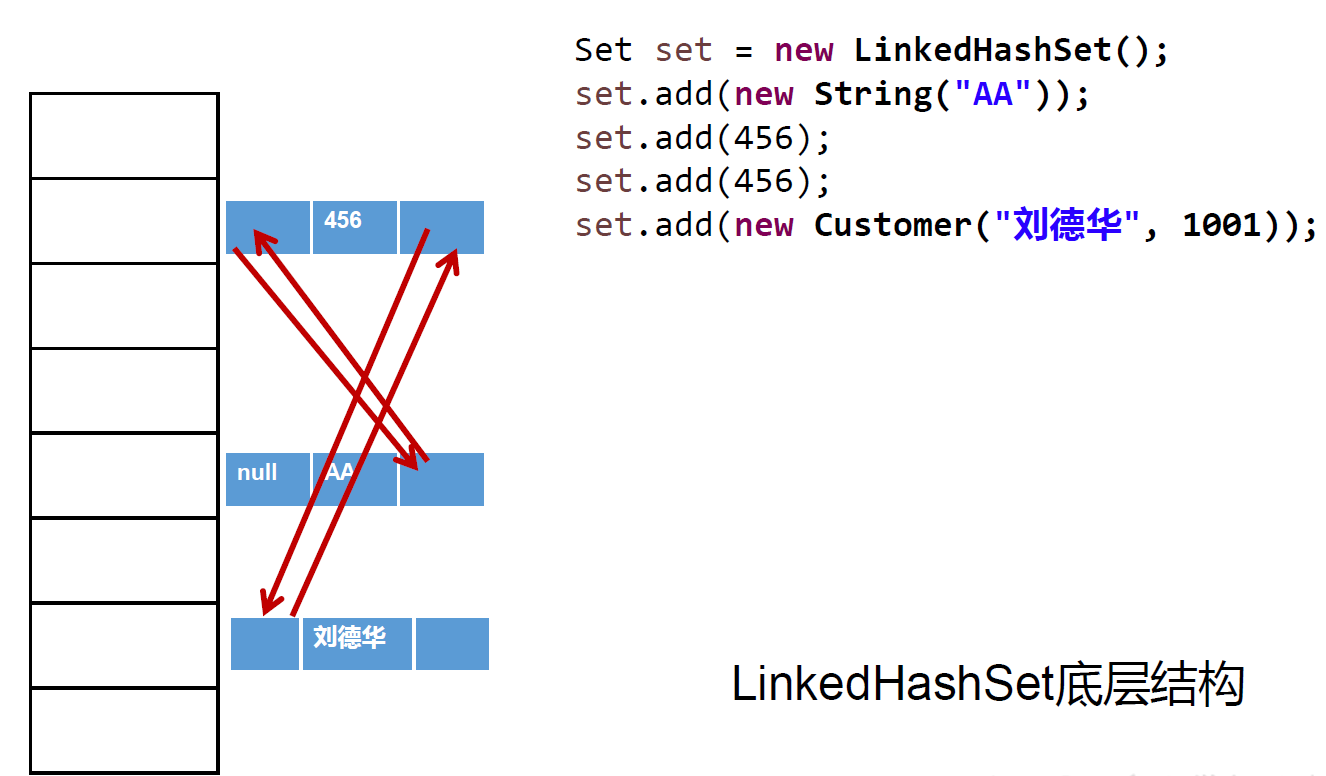 与LinkedHashSet类似,LinkedHashMap可以维护Map的迭代顺序:迭代顺序与Key-Value对的插入顺序一致