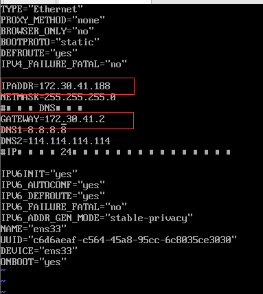 vim /etc/sysconfig/network-scripts/ifcfg-ens33