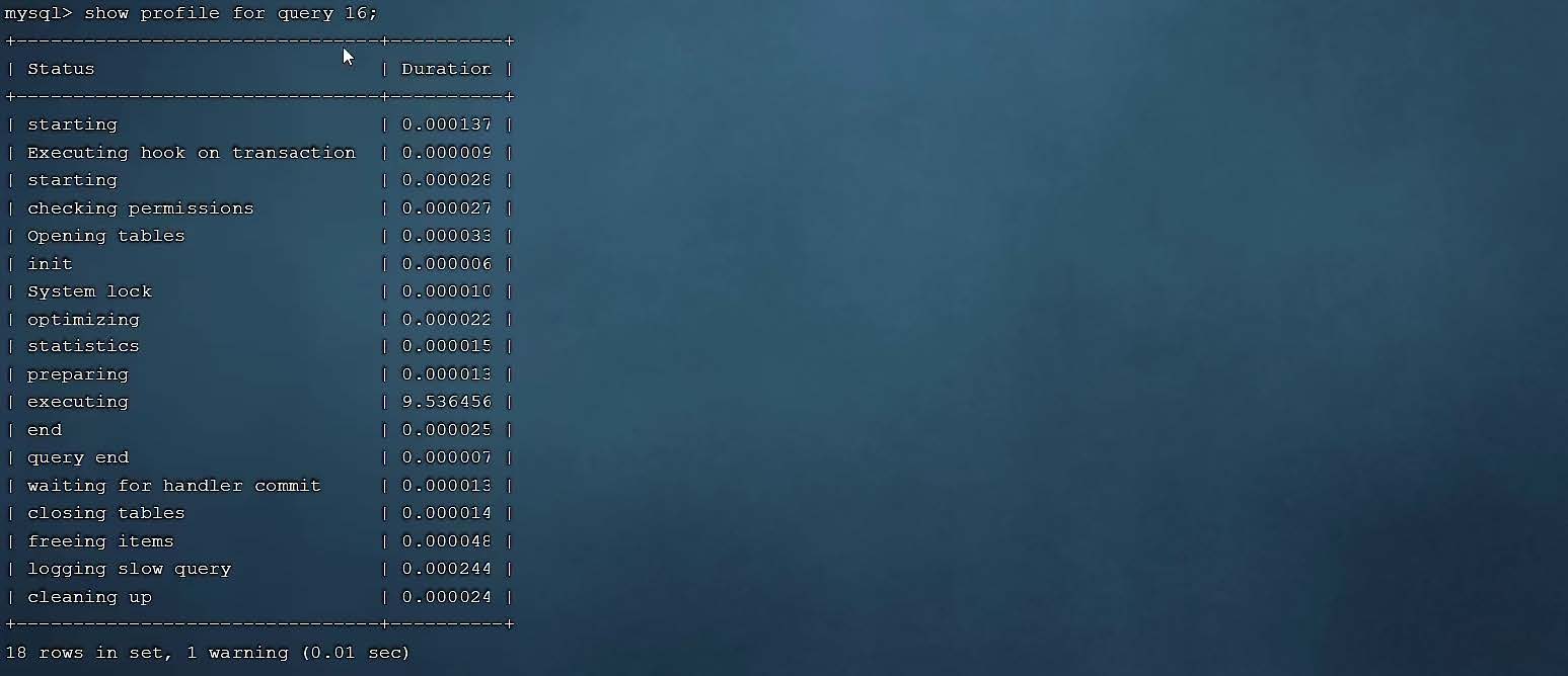 show profiles 能够在做SQL优化时帮助我们了解时间都耗费到哪里去了。通过have_profiling参数,能够看到当前MySQL是否支持profile操作